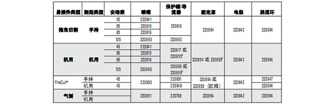 割炬易損件可提供各種數(shù)量的噴嘴和電極。有關(guān)更多信息,請聯(lián)系您的經(jīng)銷商。